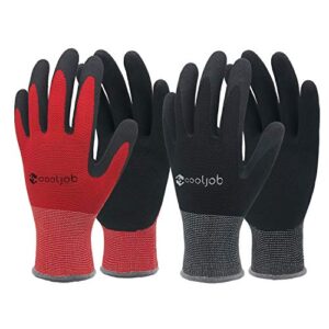COOLJOB Gardening Gloves for Men, 2 Pairs Breathable Rubber Coated Garden Gloves, Work Gloves for Men, Men’s Large Size Fits Most, Black & Red (2 Pairs L)
