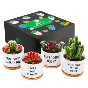 GEMWAVE Small Succulent Pots, Ceramic Pot Planters Cute Office Kitchen Home Decor Gift for Coworkers Handmade Small Plant Pot for Indoor Set of 4 Cool Women Gifts for Plant Lovers